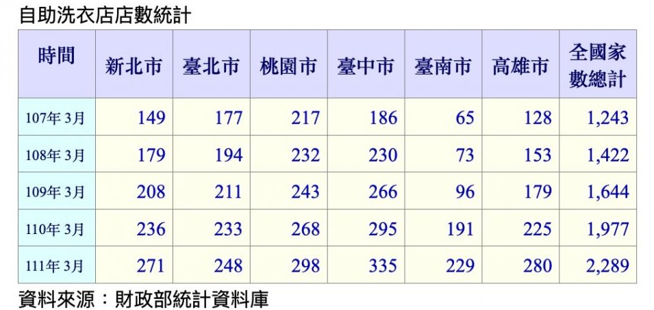 根據統計資料顯示2018年3月全台自助洗衣店約1243店,至當年3月已經成長到2289店,4年期間快速增加約千店,成長幅度近8成,您還在等什麼呢???。